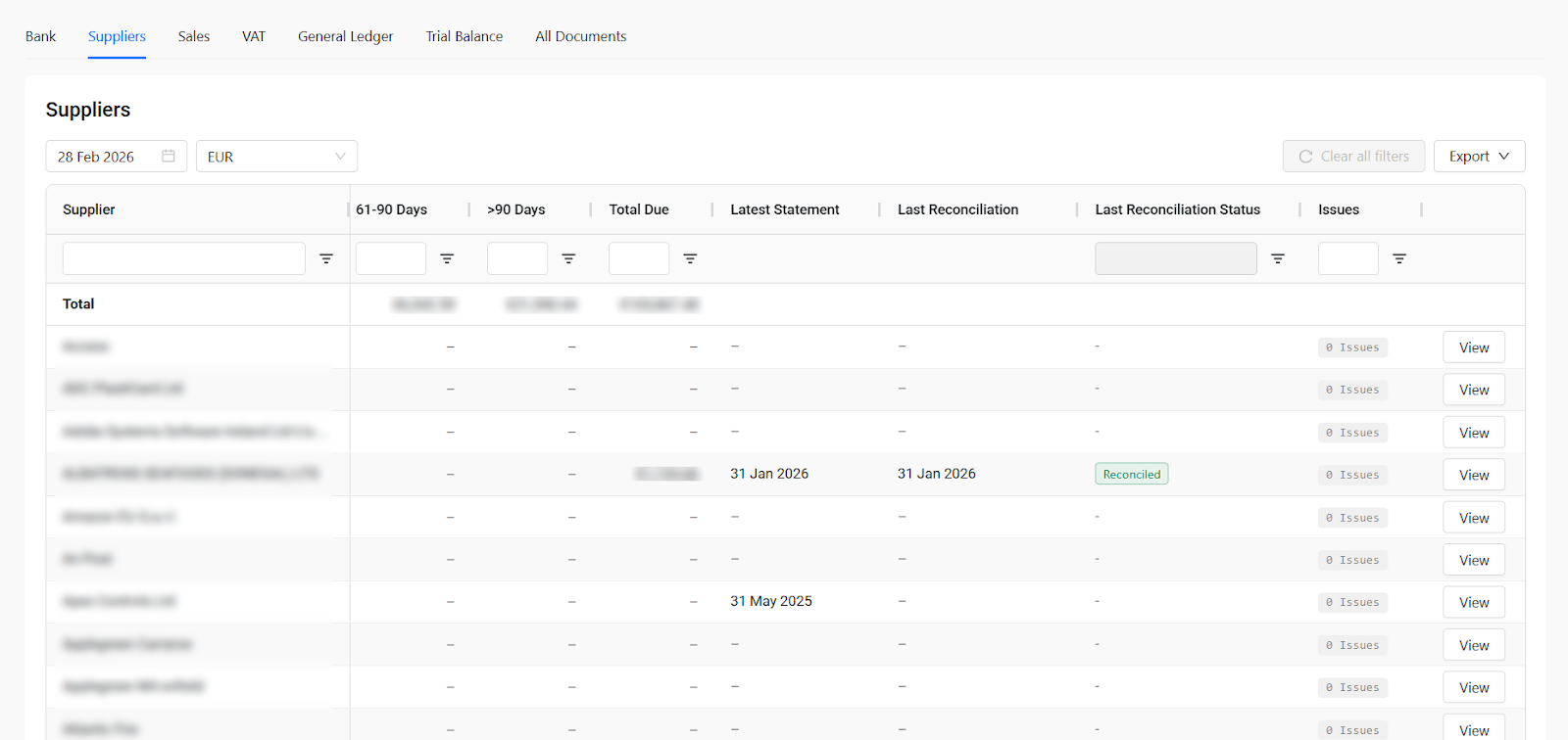 - Last reconciliation. When the supplier was last reconciled.